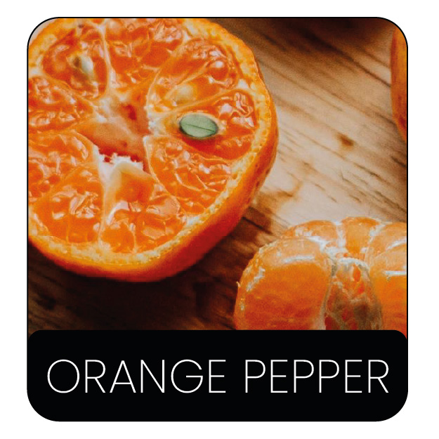 Una fragancia cítrica especiada, moderna y con carácter. La naranja aporta energía y frescura, mientras la pimienta despierta los sentidos.